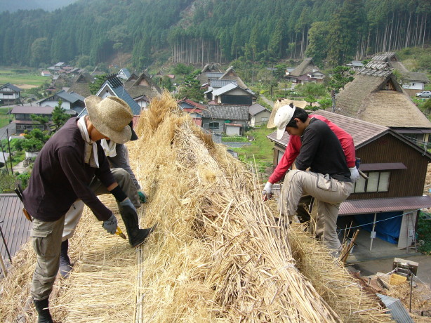 こんな風にきれいに曲げるためにはススキを濡らしておかなければならなさそうですが、トタンや杉皮を被せてからどうやって乾かしたのか?
