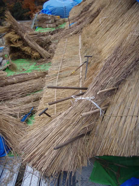 「アシ」をかきつけた上に、角度を稼ぐための稲藁を取りつけて行きます。